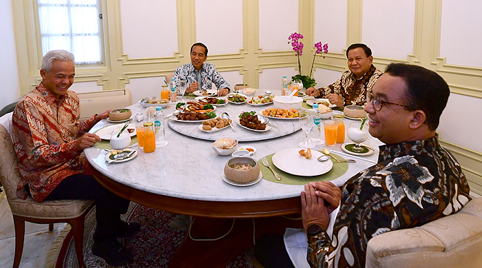 Presiden Jokowi Makan Siang Bareng Tiga Capres di Istana Merdeka