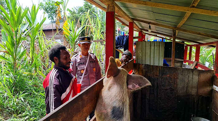 Kehadiran Iptu Jufri Rambu beserta anggota di spot ternak babi Yanson Sinpanki merupakan salah satu bentuk perhatian Satgasres Binmas Noken Operasi Damai Cartenz-2022.
