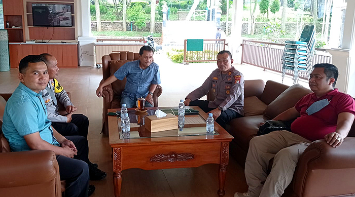 Depok – Kepala Kepolisian Sektor (Kapolsek) Bojonggede, Ajun Komisaris Polisi (AKP) Dwi Susanto bersama Kepala Unit Reserse Kriminal (Kanit Reskrim) Polsek Bojonggede, AKP Ade AS melaksanakan kegiatan sambang dan silaturahmi ke kediaman tokoh masyarakat Desa Cimanggis, H Rahmat Yasin, di Perumahan Billabong Blok G, Kecamatan Bojonggede, Kabupaten Bogor, Jawa Barat, Jumat (4/4).