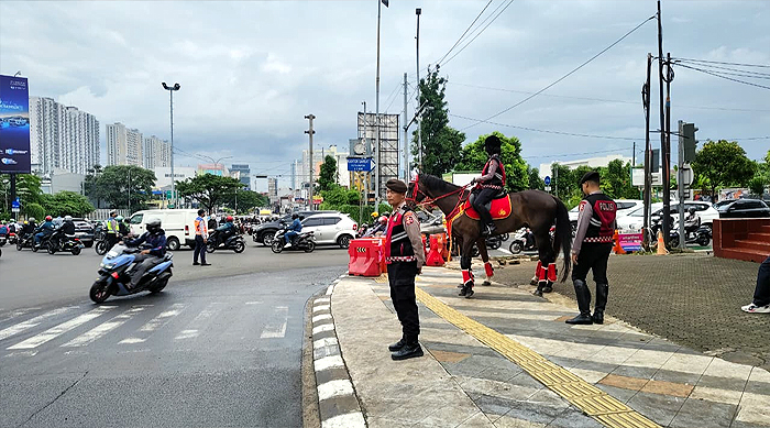 Hingga kegiatan berakhir, situasi di sepanjang Jalan Margonda Raya terpantau aman, tertib, dan terkendali. Seluruh personel maupun satwa turangga kembali ke Mako dalam keadaan sehat dan lengkap. (Ags/Foto: Ist./DivHumas Polri)