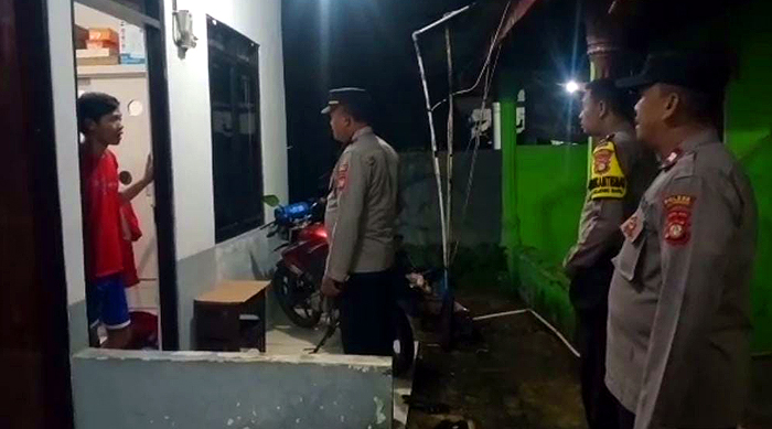 Depok – Anggota Kepolisian Sektor (Polsek) Bojonggede melakukan patroli malam dengan mengetuk pintu rumah warga untuk memberikan imbauan terkait keamanan kendaraan.
