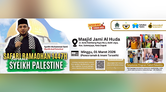 Depok – Ramadhan 1447 Hijriah menjadi momentum istimewa bagi jamaah Masjid Jami Al-Huda, Bakti Jaya, Kecamatan Sukmajaya, Kota Depok. Melalui kegiatan Safari Ramadhan yang digelar pada Minggu (1/3/2026), masjid ini menghadirkan Syekh Muhammad Sami, dai asal Palestina, sebagai penceramah dan Imam Salat Tarawih.